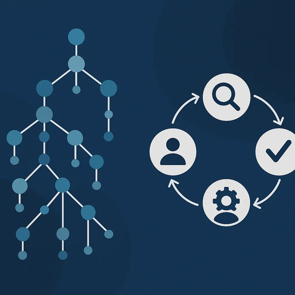 RAG (Retrieval-Augmented Generation) links an LLM with a knowledge base. It retrieves documents—often via vector search—and uses them to ground generation. Solid for static Q&A, but limited in adaptability, validation, and tool use.